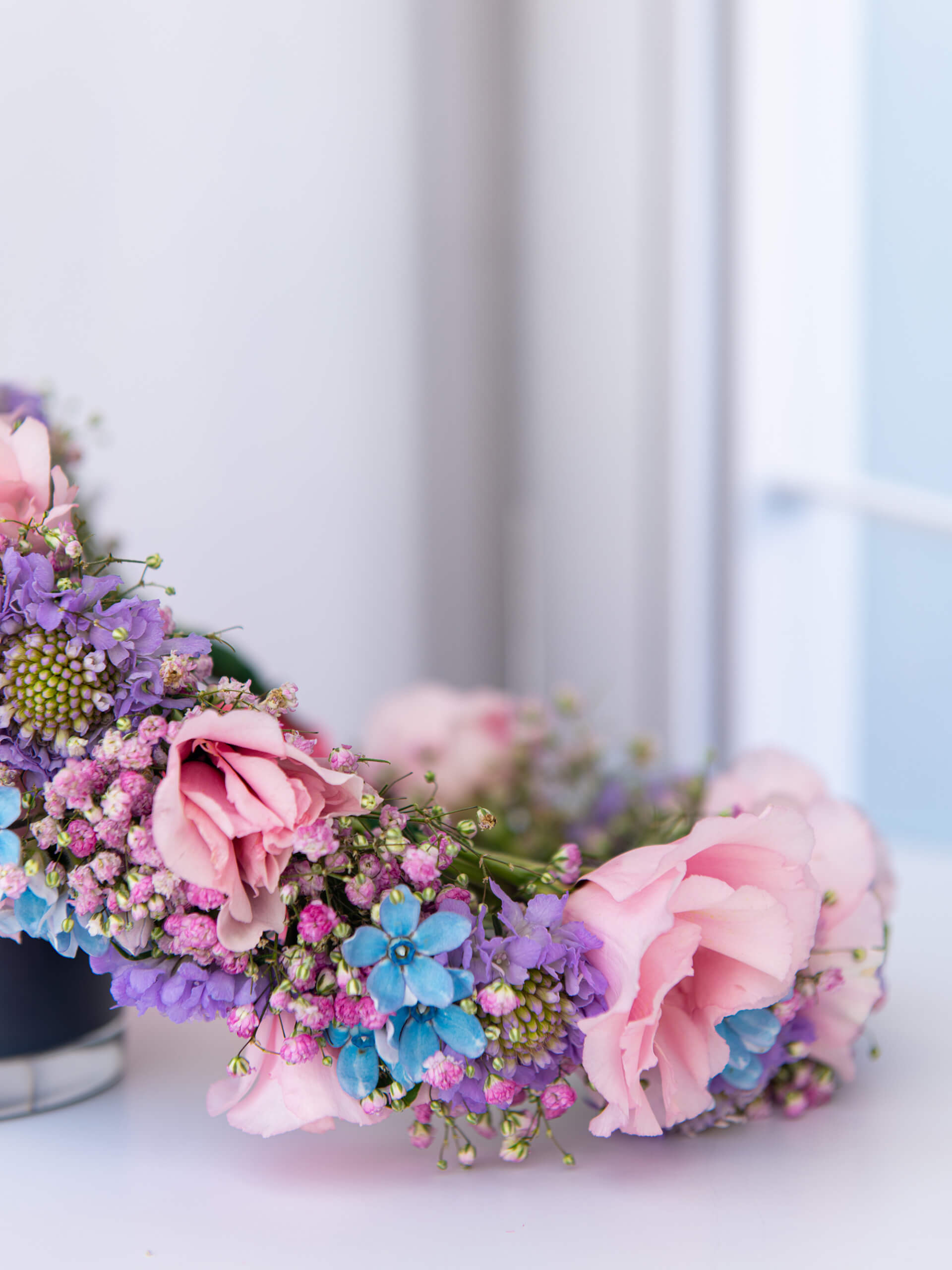 סידור ראש שופע שלוב במגוון צבעים חיים ומלאי שפע שמקרינים אור ושמחה.