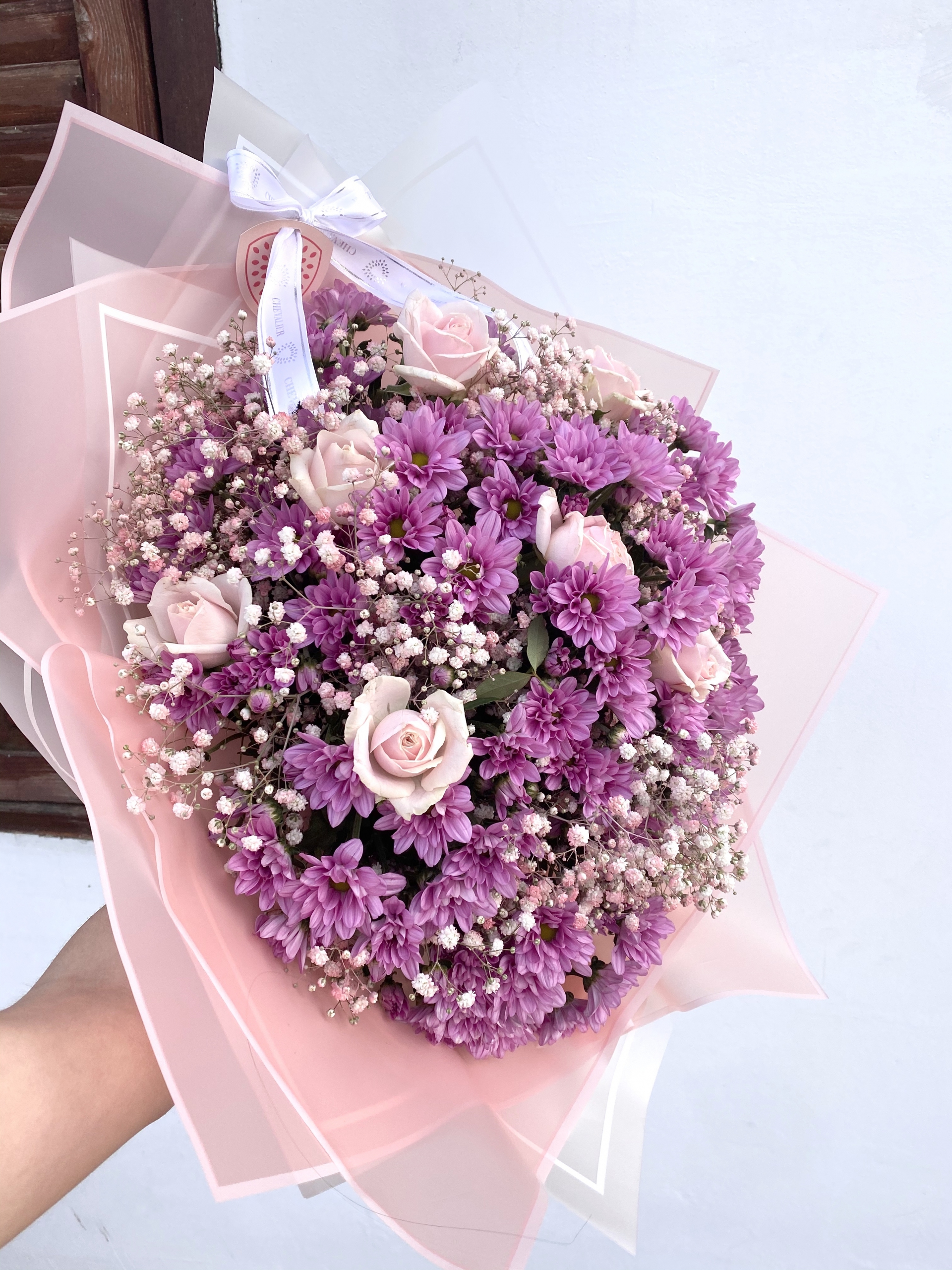 ורוד ורוד ורוד, זר קסום שכולו ורוד המכיל ורדים ורודים, חרצית ורודה וגיפסנית ורודה